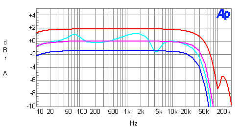 the order of +1/-1.5dB. Frequency response as a function of volume control setting was