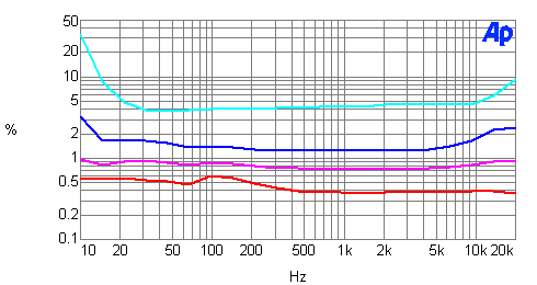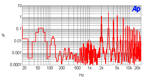 a 10W 1kHz test signal is plotted in Chart 5. The magnitude of the AC-line harmonics are